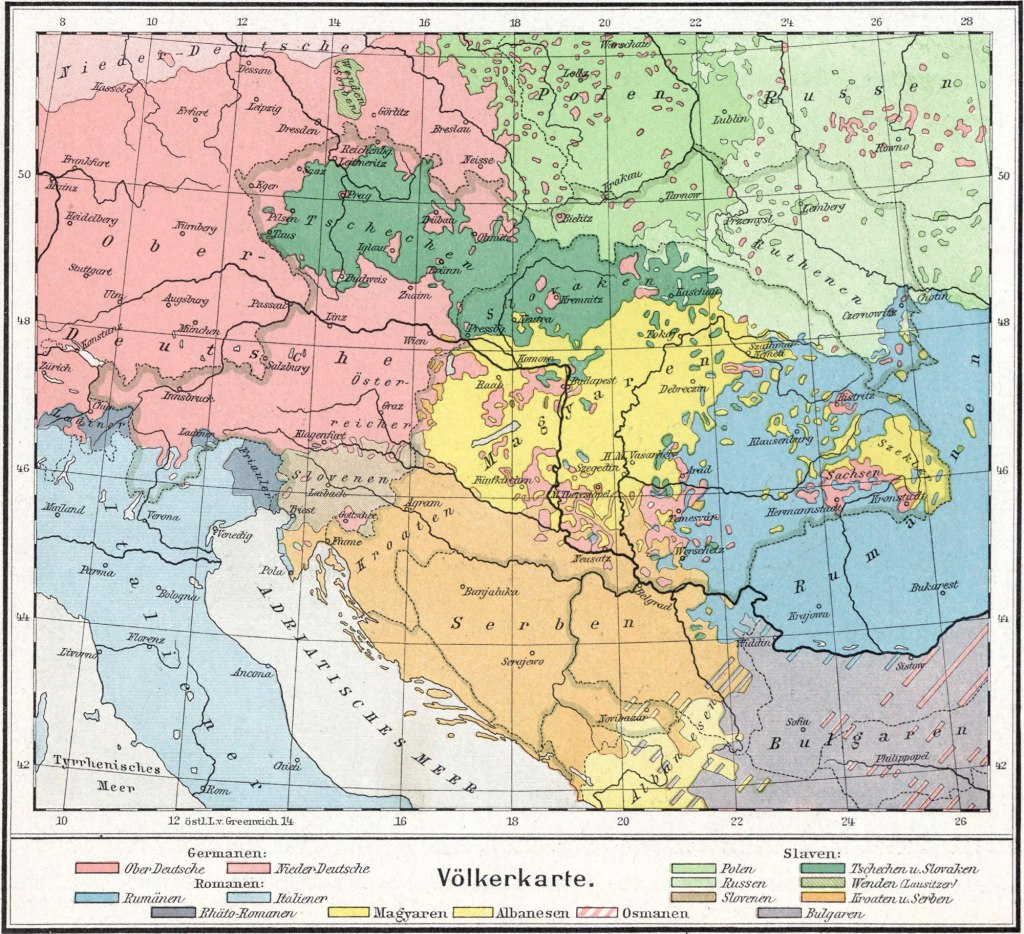 Here’s another example from the same symphony. Not exactly military music, but definitely music of the borderlands: geographically, the southern borderlands of the Austro-Hungarian Empire (see map below) where the nationalist struggles for independence of the Southern Slavs were to become the flashpoints that ignited the First World War; and musically, the overlapping borders between military, klezmer, and Balkan folk musics.