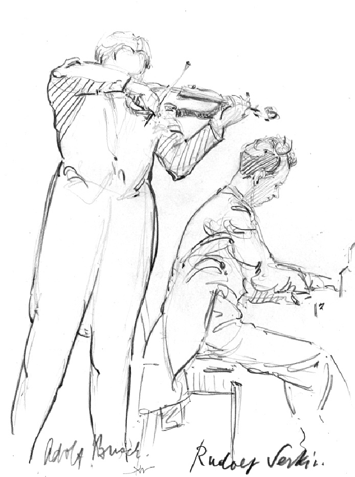 The Busch-Serkin relationship was one of the great musical partnerships, and their chamber music groupings were literally family affairs: Adolf Busch became Serkin’s father-in-law when Rudolf married Adolf’s daughter Irene in 1935, and Adolf’s brother Hermann played cello in the quartet. And they worked so intensely together that they often performed concerts from memory (including complete cycles of the Beethoven violin sonatas).